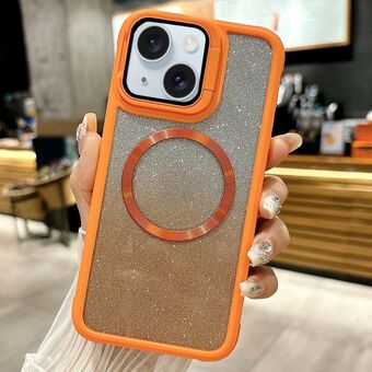 For iPhone 15 Plus Electroplated Holder Gradient Glitter MagSafe Phone Case(Purple)