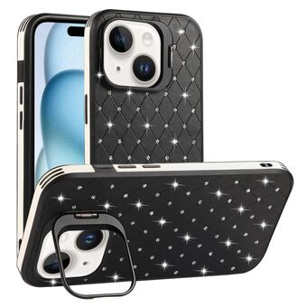 For iPhone 15 Plus Starry Bling Diamonds Lens Holder Phone Case(Black)