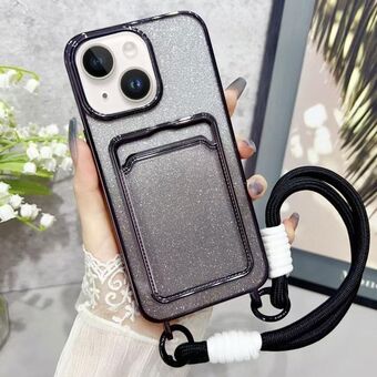 For iPhone 15 Plus Plating Gradient Glitter TPU Phone Case with Card Slot & Strap(Black)