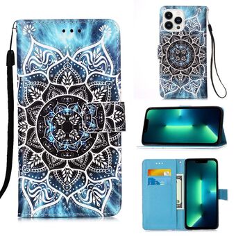 For iPhone 15 Pro Colored Drawing Pattern Plain Weave Leather Phone Case(Undersea Mandala)