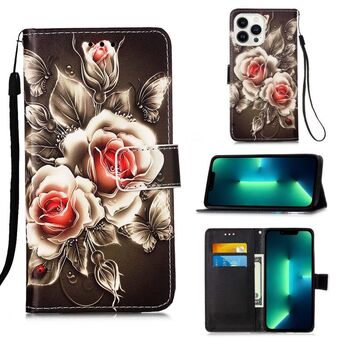 For iPhone 15 Pro 3D Painting Horizontal Flip Leather Phone Case(Rose Butterfly)