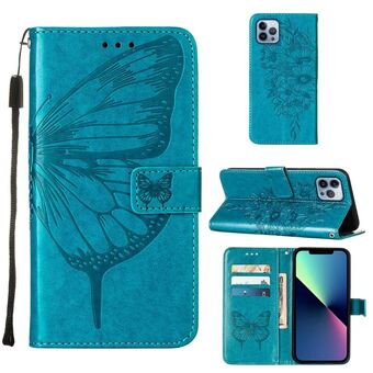 For iPhone 15 Pro Embossed Butterfly Leather Phone Case(Blue)