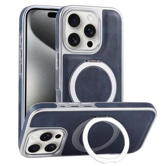 For iPhone 15 Pro Plated Leather Grain Rotation MagSafe Holder Phone Case(Blue)