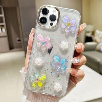 Θήκη τηλεφώνου για iPhone 15 Pro 3D Λουλούδια Γκλίτερ Εποξειδική TPU (Πολύχρωμα Λουλούδια)