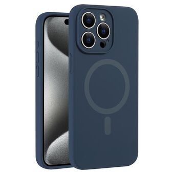 For iPhone 15 Pro Max Fine Hole Pure Color Liquid Silicone MagSafe Phone Case(Navy Blue)