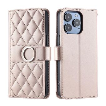 For iPhone 15 Pro Max Ring Buckle Rhombic Leather Phone Case(Rose Gold)