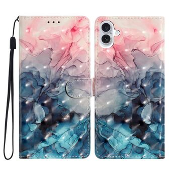 For iPhone 16 3D Pattern Leather Phone Case(3D Pink Blue Marble)