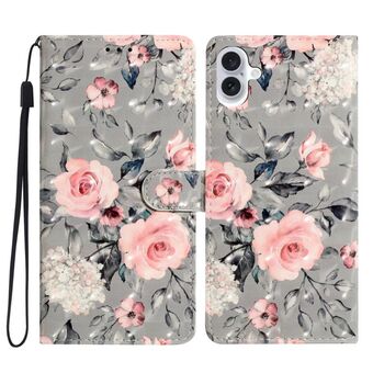 For iPhone 16 3D Pattern Leather Phone Case(Gray Base Flower)