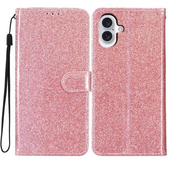For iPhone 16 Glitter Powder Flip Leather Phone Case(Rose Gold)
