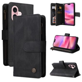 For iPhone 16 Skin Feel Multi-Card Wallet Zipper Leather Phone Case(Black)