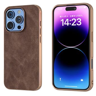For iPhone 16 Electroplated Frame PU Leather Full Coverage Phone Case(Coffee)