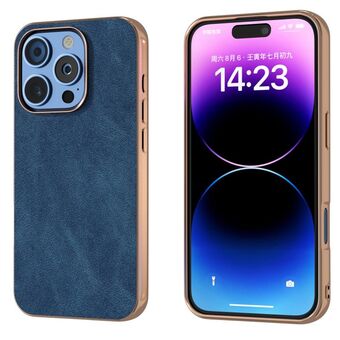 For iPhone 16 ABEEL Electroplating Frame Genuine Leather Wave Phone Case(Blue)