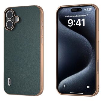 For iPhone 16 ABEEL Electroplated Frame Genuine Leather Elegant Phone Case(Green)