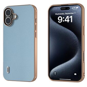 For iPhone 16 ABEEL Electroplated Frame Genuine Leather Elegant Phone Case(Sky Blue)