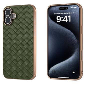 For iPhone 16 Electroplated Frame Woven Texture PU Phone Case(Green)