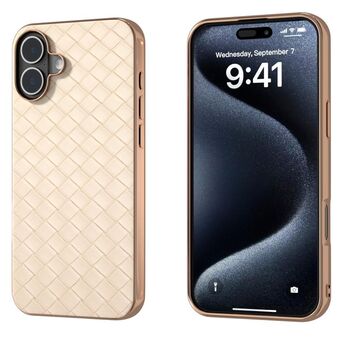 For iPhone 16 Electroplated Frame Woven Texture PU Phone Case(Beige)