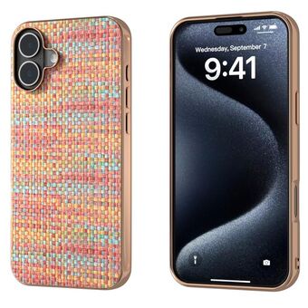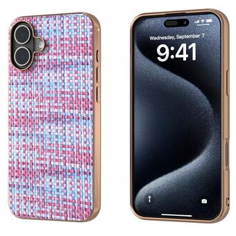 For iPhone 16 Electroplated Frame Woven Texture PU Phone Case(Pink)