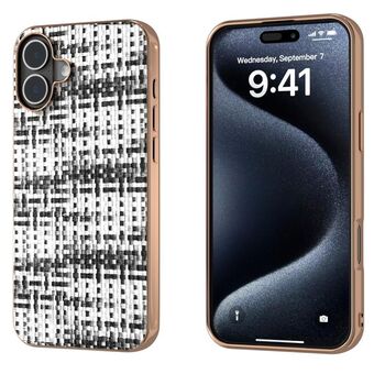 For iPhone 16 Electroplated Frame Woven Texture PU Phone Case(White)