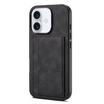 For iPhone 16 Denior D08 PU Single Card Slot Holder Phone Case(Black) (Denior)