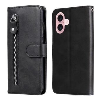 For iPhone 16 Fashion Calf Texture Zipper Leather Phone Case(Black)