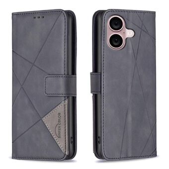 For iPhone 16 Magnetic Buckle Rhombus Texture Leather Phone Case(Black)