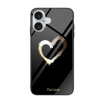 For iPhone 16 Colorful Painted Glass Phone Case(Golden Love)