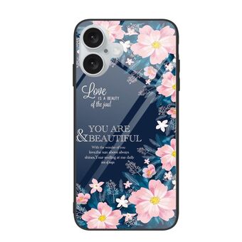 For iPhone 16 Colorful Painted Glass Phone Case(Flower)