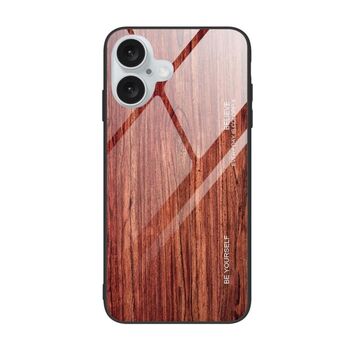 For iPhone 16 Wood Grain Glass Phone Case(Coffee)