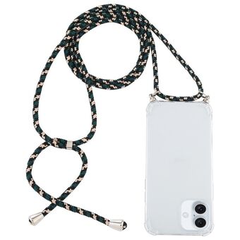 For iPhone 16 Four-Corner Shockproof Transparent TPU Case with Lanyard(Dark Green)