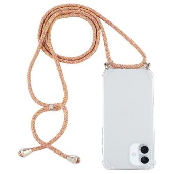 For iPhone 16 Four-Corner Shockproof Transparent TPU Case with Lanyard(Red Grey Yellow)