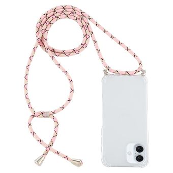 For iPhone 16 Four-Corner Shockproof Transparent TPU Case with Lanyard(Light Pink)