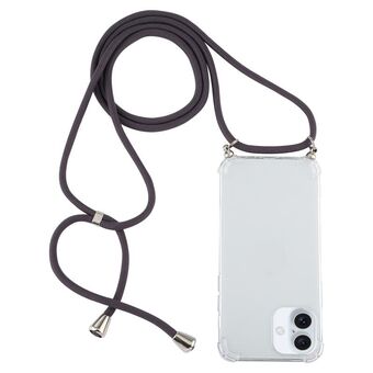 For iPhone 16 Four-Corner Shockproof Transparent TPU Case with Lanyard(Purple)