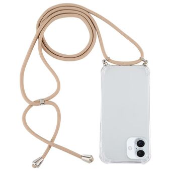 For iPhone 16 Four-Corner Shockproof Transparent TPU Case with Lanyard(Grey Yellow)