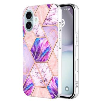 For iPhone 16 Electroplating Marble Dual-side IMD Phone Case(Purple 016)