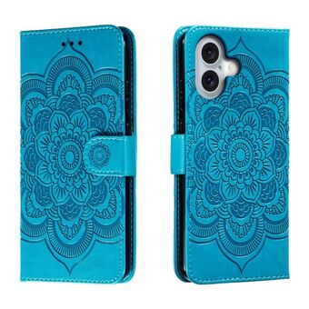 For iPhone 16 Mandala Embossing Pattern Horizontal Flip Leather Phone Case(Blue)