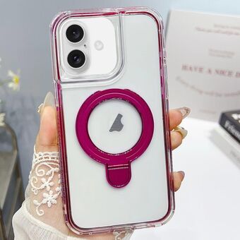 For iPhone 16 Translucent 3 in 1 Holder MagSafe Phone Case(Dark Red)