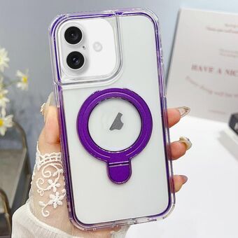For iPhone 16 Translucent 3 in 1 Holder MagSafe Phone Case(Purple)