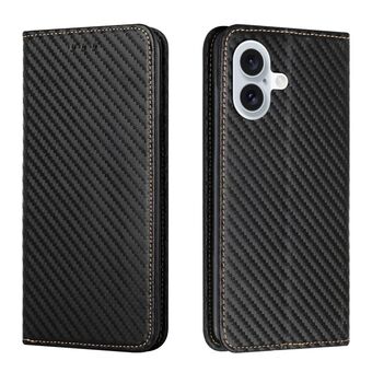 For iPhone 16 Carbon Fiber Texture Magnetic Flip Leather Phone Case(Black)