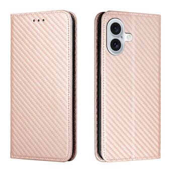 For iPhone 16 Carbon Fiber Texture Magnetic Flip Leather Phone Case(Rose Gold)