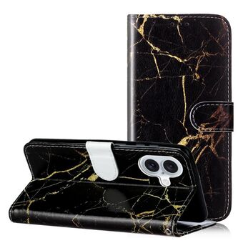 For iPhone 16 Splicing Marble Flower IMD TPU Phone Case(Black Flower)