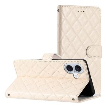 For iPhone 16 Rhombus Lattice Texture Leather Phone Case(White)
