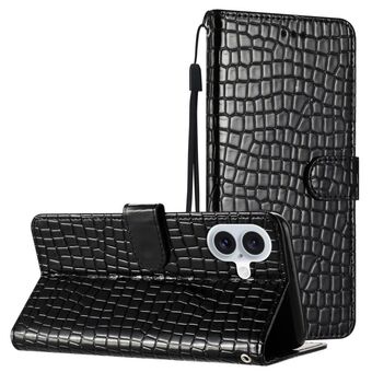 For iPhone 16 Crocodile Texture Horizontal Flip Leather Phone Case(Black)