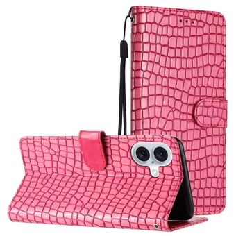For iPhone 16 Crocodile Texture Horizontal Flip Leather Phone Case(Rose Red)
