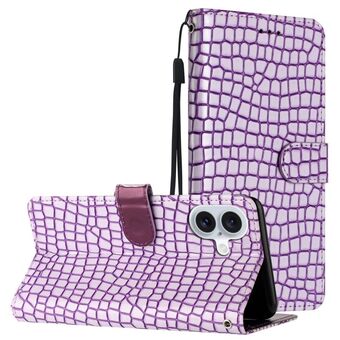 For iPhone 16 Crocodile Texture Horizontal Flip Leather Phone Case(Purple)