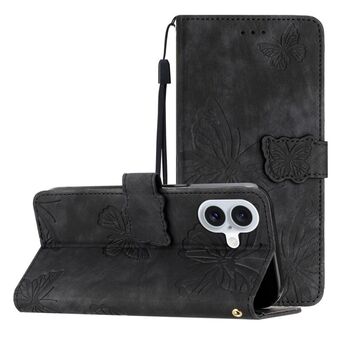 For iPhone 16 Skin-feel Embossed Butterfly Leather Phone Case(Black)