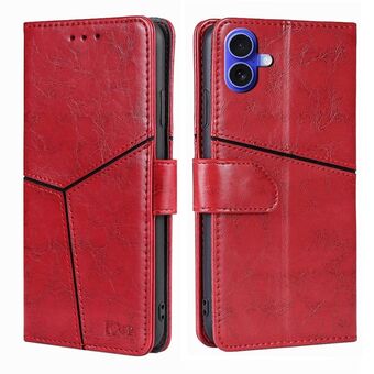 For iPhone 16 Geometric Stitching Leather Phone Case(Red)