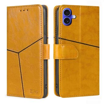 For iPhone 16 Geometric Stitching Leather Phone Case(Yellow)