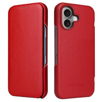 For iPhone 16 Fierre Shann Top Layer Cowhide Business Magnetic Leather Phone Case(Red) (FIERRE SHANN)