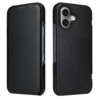 For iPhone 16 Fierre Shann Top Layer Cowhide Business Magnetic Leather Phone Case(Black) (FIERRE SHANN)