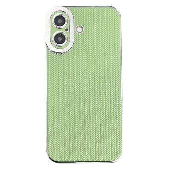 For iPhone 16 Electroplated Silver Edge Grain Texture TPU Phone Case(Green)